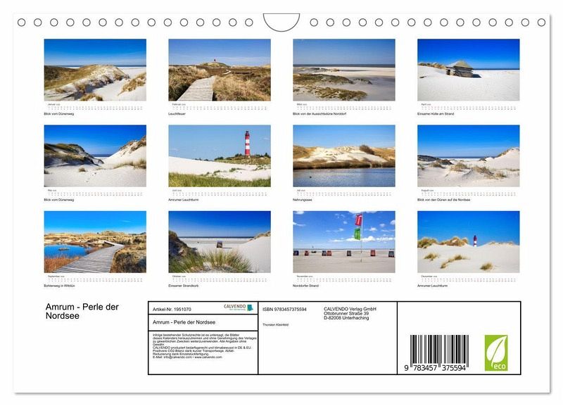 Dieser Kalender ist nicht nur ein Blickfang für jede Wand, sondern auch eine ideale Geschenkidee für Freunde und Familie oder eine Erinnerung an einen unvergesslichen Urlaub auf Amrum.Amrum