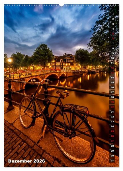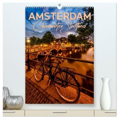Amsterdam ist eine geschichtsträchtige Stadt mit einer einzigartigen Anziehungskraft. Sie gilt als das Venedig des Nordens. Viele idyllische Grachten durchziehen das historische Zentrum. Unternehmen Sie mit diesem Kalender einen Stadtspaziergang entlang der vielen Sehenswürdigkeiten. Entdecken Sie dabei das typische Flair, historische Bauwerke und bezaubernde Abendimpressionen.
