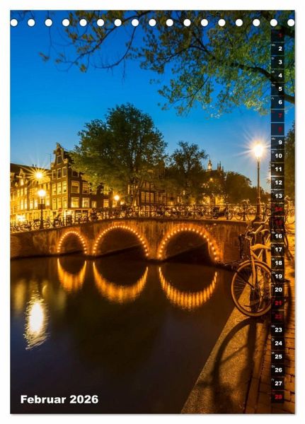 Amsterdam ist eine geschichtsträchtige Stadt mit einer einzigartigen Anziehungskraft. Sie gilt als das Venedig des Nordens. Viele idyllische Grachten durchziehen das historische Zentrum. Unternehmen Sie mit diesem Kalender einen Stadtspaziergang entlang der vielen Sehenswürdigkeiten. Entdecken Sie dabei das typische Flair, historische Bauwerke und bezaubernde Abendimpressionen.