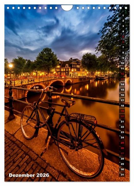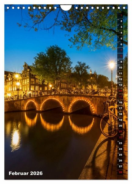 Amsterdam ist eine geschichtsträchtige Stadt mit einer einzigartigen Anziehungskraft. Sie gilt als das Venedig des Nordens. Viele idyllische Grachten durchziehen das historische Zentrum. Unternehmen Sie mit diesem Kalender einen Stadtspaziergang entlang der vielen Sehenswürdigkeiten. Entdecken Sie dabei das typische Flair, historische Bauwerke und bezaubernde Abendimpressionen.
