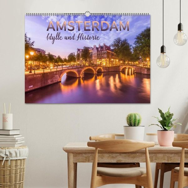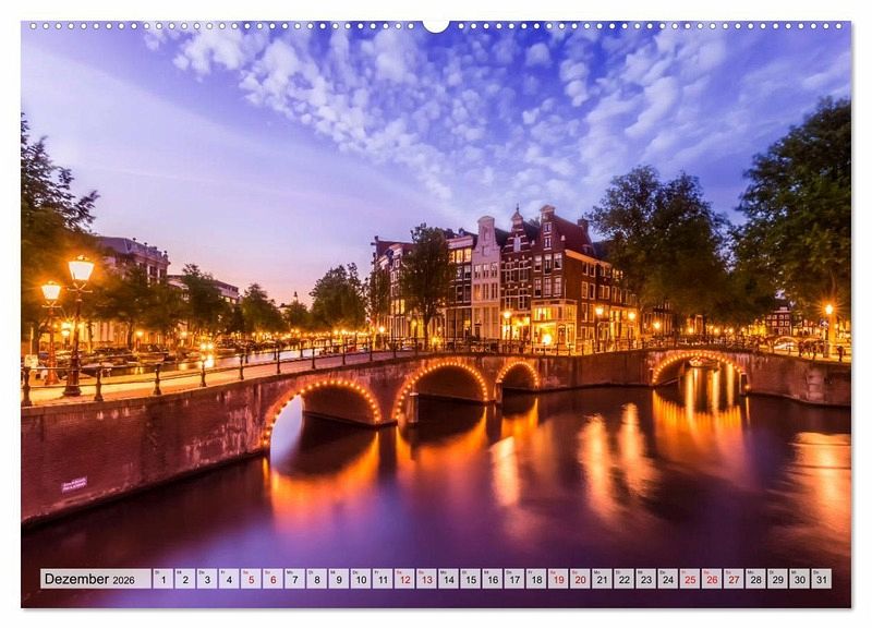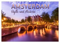 Amsterdam ist eine geschichtsträchtige Stadt mit einer einzigartigen Anziehungskraft. Sie gilt als das Venedig des Nordens. Viele malerische Grachten durchziehen das Zentrum. Unternehmen Sie mit diesem Kalender einen Spaziergang entlang der vielen Attraktionen. Entdecken Sie dabei das typische Flair, historische Bauwerke und bezaubernde Abendansichten.