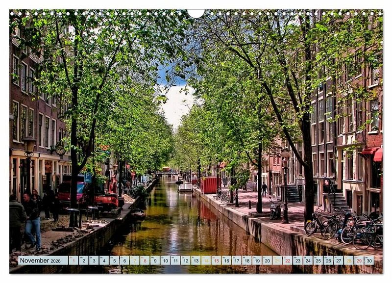 Nach Aussage des offiziellen Besucherportals der niederländischen Hauptstadt gibt es in Amsterdam fast so viele Fahrräder wie Einwohner, manche behaupten sogar, es gäbe mehr Fahrräder. Außerdem 6 Windmühlen, 2.500 Hausboote und 165 Grachten, eine Vielzahl historischer Sehenswürdigkeiten, weltberühmte Museen, Unmengen von Coffee-Shops und ein ausgeprägtes Nachtleben im Rotlicht-Viertel. Das recht kleine Amsterdam ist eben einzigartig unter den Städten der Welt. Für diesen Kalender hat der Fotokünstler Peter Roder zwölf wunderschöne Aufnahmen dieser einzigartigen Stadt zusammengestellt und gestaltet, ein zauberhafter Hingucker für das ganze Jahr.