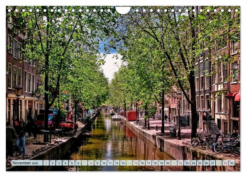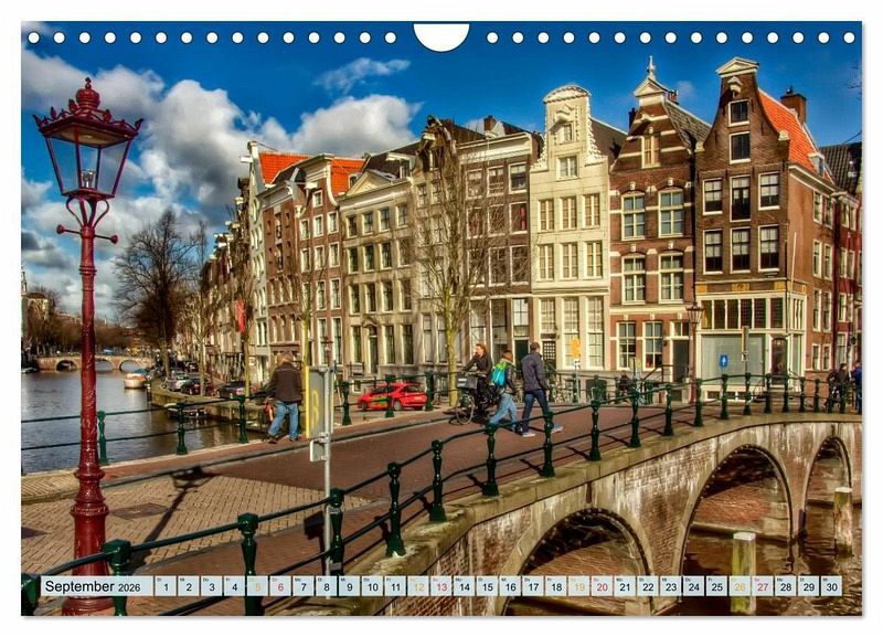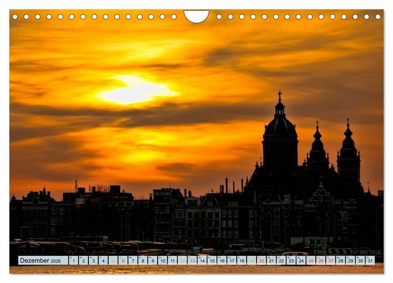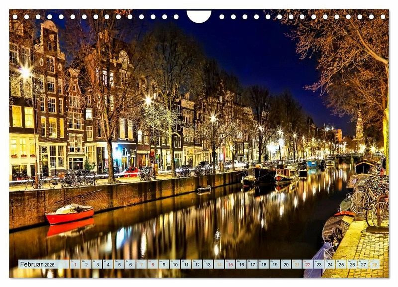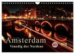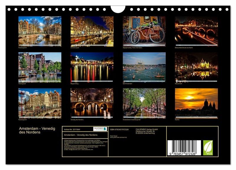 Nach Aussage des offiziellen Besucherportals der niederländischen Hauptstadt gibt es in Amsterdam fast so viele Fahrräder wie Einwohner, manche behaupten sogar, es gäbe mehr Fahrräder. Außerdem 6 Windmühlen, 2.500 Hausboote und 165 Grachten, eine Vielzahl historischer Sehenswürdigkeiten, weltberühmte Museen, Unmengen von Coffee-Shops und ein ausgeprägtes Nachtleben im Rotlicht-Viertel. Das recht kleine Amsterdam ist eben einzigartig unter den Städten der Welt. Für diesen Kalender hat der Fotokünstler Peter Roder zwölf wunderschöne Aufnahmen dieser einzigartigen Stadt zusammengestellt und gestaltet, ein zauberhafter Hingucker für das ganze Jahr.