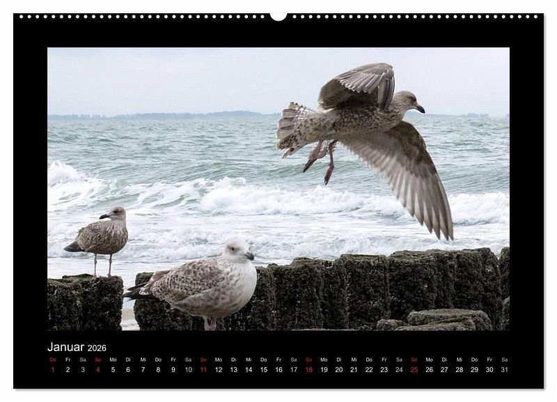 Ein Tag am Meer, ein Tag an der Nordsee, ein Spaziergang am Strand, die Möwen beobachten, die zur Nordsee gehören wie der Sand zum Strand. Den Sonnenaufgang und den Sonnenuntergang genießen. All das von zu Hause aus, mit dem Kalender "An der Nordsee"