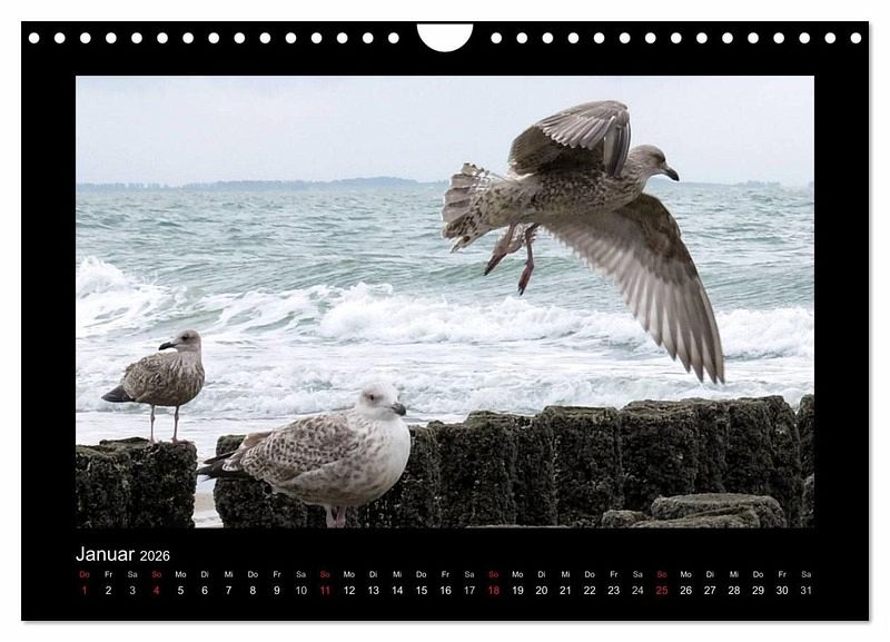 Ein Tag am Meer, ein Tag an der Nordsee, ein Spaziergang am Strand, die Möwen beobachten, die zur Nordsee gehören wie der Sand zum Strand. Den Sonnenaufgang und den Sonnenuntergang genießen. All das von zu Hause aus, mit dem Kalender "An der Nordsee"