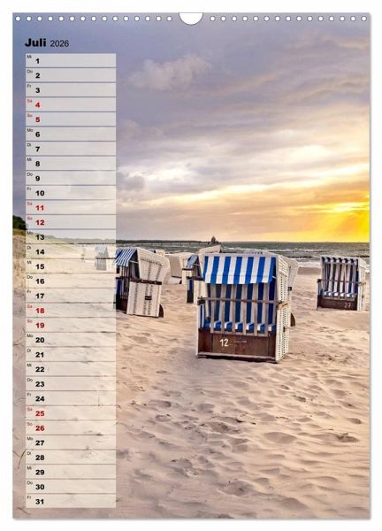 Naturaufnahmen von Strand und Meer mit Lichtstimmungen, kombiniert mit der Planerfunktion für Geburtstage und Termine. Dieser Geburtstagskalender mit ausgesuchten, maritimen Fotos von Strandlandschaften an der deutschen See, der Monat für Monat die Sehnsucht zum Meer in Ihnen weckt, ist ein ganz besonderer Hingucker in Ihrem Zuhause.