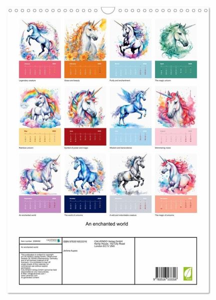 QUALITY - High-quality photo calendar with 12 beautiful images on light-resistant paper, robust spiral binding with hanger.SUSTAINABLE - Significant waste reduction due to print-on-demand production, environmentally friendly FSC-certified paper, produced in the UK, climate-conscious logistical processes.PERFECT GIFT - calendars for friends and family, for children, all ages and all occasions, from Christmas to birthdays and everything in between.LOTS OF CHOICE - Wall calendars in different sizes (DIN A4 and DIN A3), for any topic and personal taste, featuring photography, painting and illustrations.Each month, let yourself be carried away by the beauty and enchantment of these legendary creatures., author: Jérôme