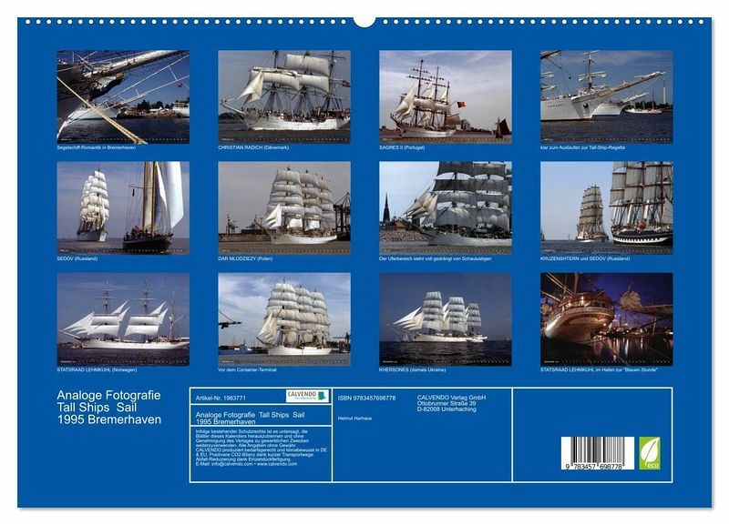 PREMIUM-LINIE - Brillanter Fotokalender mit 12 wunderschönen Motiven, Kunstdruck in Hochglanz in Museumsqualität.QUALITÄT - edle Materialien, stabile Rückwand mit 2 innovativen Einstecktaschen für eine optimale Präsentation an der Wand.NACHHALTIG - deutliche Abfallreduzierung durch bedarfsgerechte Einzelstückfertigung, umweltfreundliches FSC-zertifiziertes Papier, Produktion in Deutschland, klimabewusste Logistik.PERFEKTES GESCHENK - Kalender für Freunde und Familie, für Kinder und Erwachsene, jung und alt, zu Weihnachten, Geburtstag oder zwischendurch.Analoge Fotografie Tall Ships Sail 1995 Bremerhaven von Autor(in): Helmut Harhaus
