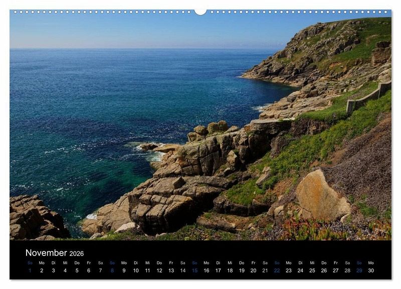 Dieser Kalender entführt Sie in die Region Englands mit dem besonderen Licht, den spektakulären Küsten und den prachtvollen Gärten: Cornwall.