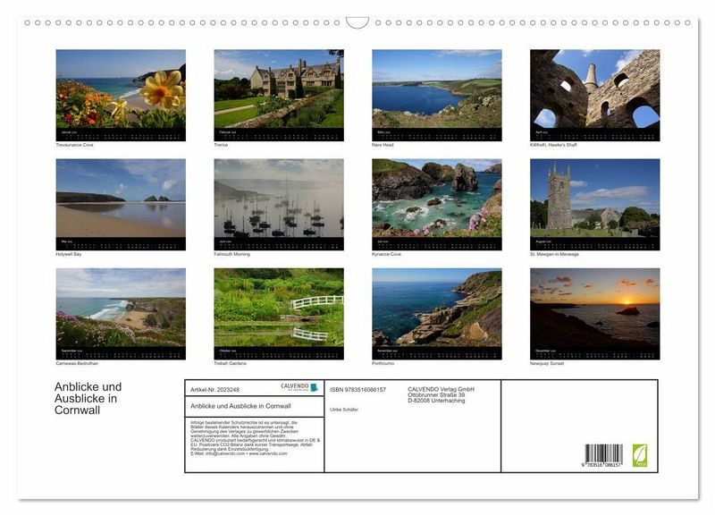 QUALITÄT - Hochwertiger Fotokalender mit 12 wunderschönen Motiven auf lichtbeständigem Bilderdruckpapier, robuste Spiralbindung mit Aufhängebügel.NACHHALTIG - deutliche Abfallreduzierung durch bedarfsgerechte Einzelstückfertigung, umweltfreundliches FSC-zertifiziertes Papier, Produktion in Deutschland, klimabewusste Logistik.PERFEKTES GESCHENK - Kalender für Freunde und Familie, für Kinder und Erwachsene, jung und alt, zu Weihnachten, Geburtstag oder zwischendurch.VIELFALT - Bildkalender in verschiedenen Formaten, z.B. DIN A5, DIN A4, DIN A3 sowie DIN A2. Ob Naturmotiv, Gemälde oder Fotos, ideal für ein persönliches Wohlfühlambiente.Eine Auswahl von Eindrücken und Aussichten aus dem spektakulären Südwesten Englands. von Autor(in): Ulrike Schaefer