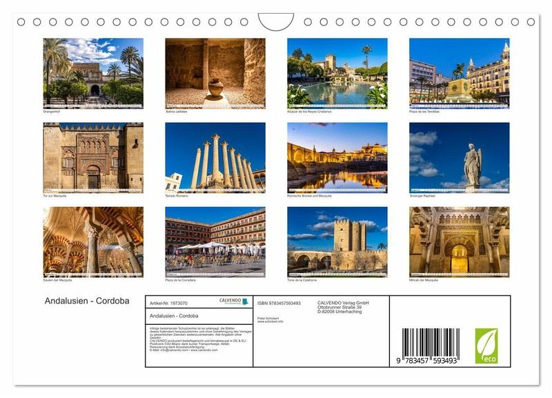 QUALITÄT - Hochwertiger Fotokalender mit 12 wunderschönen Motiven auf lichtbeständigem Bilderdruckpapier, robuste Spiralbindung mit Aufhängebügel.NACHHALTIG - deutliche Abfallreduzierung durch bedarfsgerechte Einzelstückfertigung, umweltfreundliches FSC-zertifiziertes Papier, Produktion in Deutschland, klimabewusste Logistik.PERFEKTES GESCHENK - Kalender für Freunde und Familie, für Kinder und Erwachsene, jung und alt, zu Weihnachten, Geburtstag oder zwischendurch.VIELFALT - Bildkalender in verschiedenen Formaten, z.B. DIN A5, DIN A4, DIN A3 sowie DIN A2. Ob Naturmotiv, Gemälde oder Fotos, ideal für ein persönliches Wohlfühlambiente.Die andalusische Stadt Cordoba in einem faszinierendem Kalender vom Reisefotografen Peter Schickert. von Autor(in): Peter Schickert