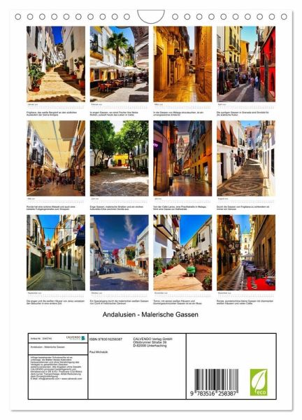 QUALITÄT - Hochwertiger Fotokalender mit 12 wunderschönen Motiven auf lichtbeständigem Bilderdruckpapier, robuste Spiralbindung mit Aufhängebügel.NACHHALTIG - deutliche Abfallreduzierung durch bedarfsgerechte Einzelstückfertigung, umweltfreundliches FSC-zertifiziertes Papier, Produktion in Deutschland, klimabewusste Logistik.PERFEKTES GESCHENK - Kalender für Freunde und Familie, für Kinder und Erwachsene, jung und alt, zu Weihnachten, Geburtstag oder zwischendurch.VIELFALT - Bildkalender in verschiedenen Formaten, z.B. DIN A5, DIN A4, DIN A3 sowie DIN A2. Ob Naturmotiv, Gemälde oder Fotos, ideal für ein persönliches Wohlfühlambiente.Die Vielfalt Andalusiens mit kleinen engen verwinkelten Gassen in den weißen Dörfern oder in den Städten sind in diesem Kalender zu bewundern von Autor(in): Paul Michalzik