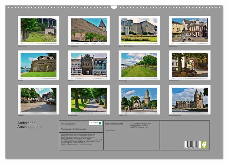 QUALITÄT - Hochwertiger Fotokalender mit 12 wunderschönen Motiven auf lichtbeständigem Bilderdruckpapier, robuste Spiralbindung mit Aufhängebügel.NACHHALTIG - deutliche Abfallreduzierung durch bedarfsgerechte Einzelstückfertigung, umweltfreundliches FSC-zertifiziertes Papier, Produktion in Deutschland, klimabewusste Logistik.PERFEKTES GESCHENK - Kalender für Freunde und Familie, für Kinder und Erwachsene, jung und alt, zu Weihnachten, Geburtstag oder zwischendurch.VIELFALT - Bildkalender in verschiedenen Formaten, z.B. DIN A5, DIN A4, DIN A3 sowie DIN A2. Ob Naturmotiv, Gemälde oder Fotos, ideal für ein persönliches Wohlfühlambiente.Andernach am Rhein von seiner schönsten Seite von Autor(in): Thomas Bartruff