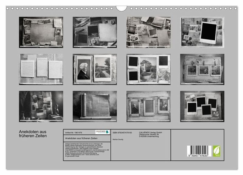 QUALITÄT - Hochwertiger Fotokalender mit 12 wunderschönen Motiven auf lichtbeständigem Bilderdruckpapier, robuste Spiralbindung mit Aufhängebügel.NACHHALTIG - deutliche Abfallreduzierung durch bedarfsgerechte Einzelstückfertigung, umweltfreundliches FSC-zertifiziertes Papier, Produktion in Deutschland, klimabewusste Logistik.PERFEKTES GESCHENK - Kalender für Freunde und Familie, für Kinder und Erwachsene, jung und alt, zu Weihnachten, Geburtstag oder zwischendurch.VIELFALT - Bildkalender in verschiedenen Formaten, z.B. DIN A5, DIN A4, DIN A3 sowie DIN A2. Ob Naturmotiv, Gemälde oder Fotos, ideal für ein persönliches Wohlfühlambiente.Andenken an Oma und Opa, in schwarz-weiß, Platz für Fotos, Briefe, Zeitungsausschnitte... von Autor(in): Marlise Gaudig