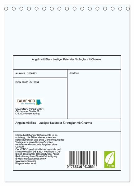 QUALITÄT - Hochwertiger Fotokalender mit 12 wunderschönen Motiven auf lichtbeständigem Bilderdruckpapier, robuste Spiralbindung.NACHHALTIG - deutliche Abfallreduzierung durch bedarfsgerechte Einzelstückfertigung, umweltfreundliches FSC-zertifiziertes Papier, Produktion in Deutschland, klimabewusste Logistik.PERFEKTES GESCHENK - Kalender für Freunde und Familie, für Kinder und Erwachsene, jung und alt, zu Weihnachten, Geburtstag oder zwischendurch.VIELFALT - Bildkalender in verschiedenen Formaten, z.B. DIN A5, DIN A4, DIN A3 sowie DIN A2. Ob Naturmotiv, Gemälde oder Fotos, ideal für ein persönliches Wohlfühlambiente.Der Kalender für passionierte Hobbyfischer und Berufspilker von Autor(in): Anja Frost