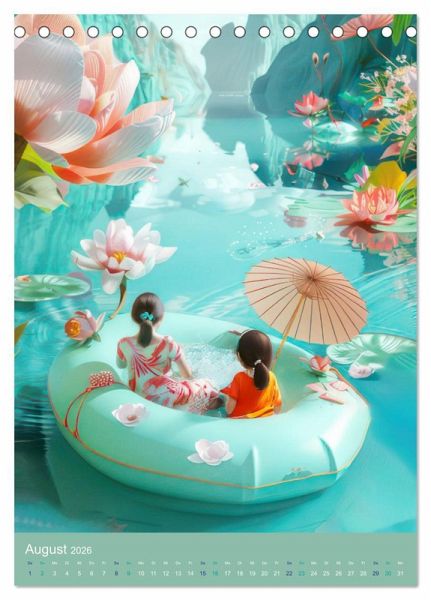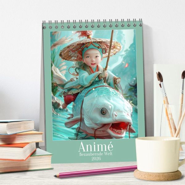 Tauchen Sie ein in die faszinierende Welt des Animé-Stils mit unserem einzigartigen Kalender. Erleben Sie farbenfrohe Szenen wie einen Ritt auf einem Wal, elegante Frauen im Kimono und zauberhafte Darstellungen von einem Mönch, wundervollen Kranichen oder einem schwimmenden Jungen. Lassen Sie sich von reizenden Landschaften, Lotusblüten, Booten und verspielten Badeszenen verzaubern, die die lieblichen Animés abrunden. Ein Muss für alle Fans der fantastischen Kunst im Animé-Stil, die mit Hilfe von KI erstellt wurde und mit Photoshop verfeinert wurden.