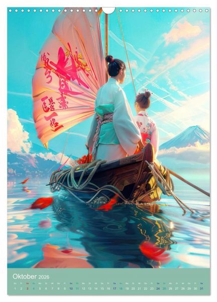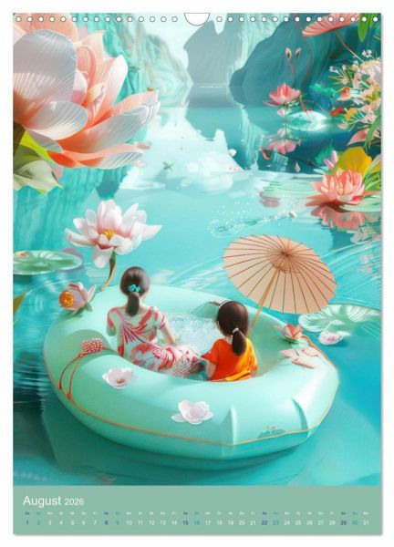 Tauchen Sie ein in die faszinierende Welt des Animé-Stils mit unserem einzigartigen Kalender. Erleben Sie farbenfrohe Szenen wie einen Ritt auf einem Wal, elegante Frauen im Kimono und zauberhafte Darstellungen von einem Mönch, wundervollen Kranichen oder einem schwimmenden Jungen. Lassen Sie sich von reizenden Landschaften, Lotusblüten, Booten und verspielten Badeszenen verzaubern, die die lieblichen Animés abrunden. Ein Muss für alle Fans der fantastischen Kunst im Animé-Stil, die mit Hilfe von KI erstellt wurde und mit Photoshop verfeinert wurden.