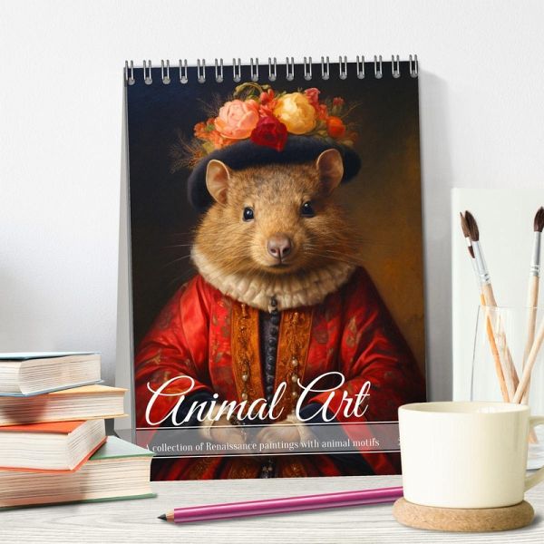 You love art and animals. Then discover the beauty and grace of animal art with our wall calendar. Animal Art is a unique collection of Renaissance paintings that show various animals in all their glory and diversity. Whether it is a majestic tiger, a playful Havanese, a cute dachshund or a wise owl, each painting is a masterpiece of art history. Be inspired by a new AI generated artwork every month and discover the fascinating world of animal art. Order your wall calendar now and secure a piece of culture for your home that will not only be an eye-catcher on your wall, but also a perfect gift for art lovers and animal lovers.