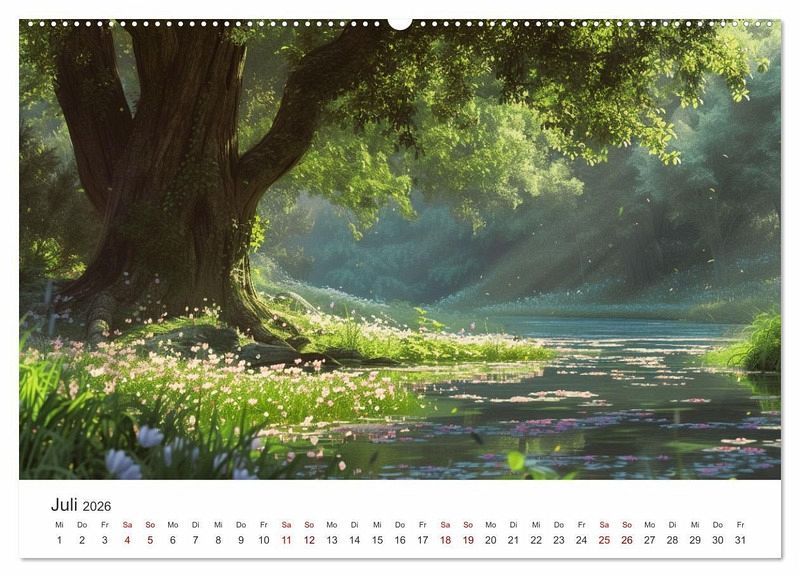 Verwandle das Jahr in ein Abenteuer! Mit unserem KI-generierten Kalender im Anime-Stil erlebst du Monat für Monat traumhafte Landschaften, die direkt aus deinen Lieblings-Animes zu stammen scheinen. Verschönere deine Wand mit diesen fantastischen Kunstwerken und lass dich von ihrer Magie verzaubern!