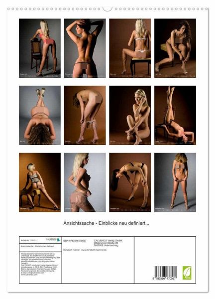 Aktfotografie ist Ansichtssache: Erleben Sie mit diesem hochwertigen Aktkalender daher jeden Monat Ästhetik pur. Schöne und makellose Körper verzaubern den Betrachter und sorgen für ein sinnliches Erlebnis - und das 365 Tage im Jahr. Garantiert werden auch Sie immer wieder neue Einblicke in die Königsdisziplin der Fotografie bekommen. Mit höchster Sensibilität des Fotografen sind diese Aufnahmen entstanden. Lassen Sie sich also verwöhnen mit Einblicken der ganz besonderen Art.