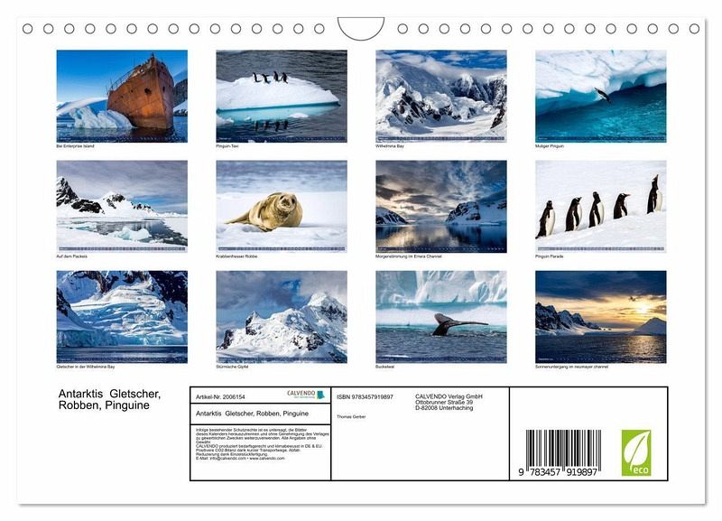 Von einer Expeditionsreise zur Antarktis hat Fotograf Thomas Gerber beeindruckende Bilder mitgebracht. Eine Auswahl finden sie in diesem Kalender, der Ihnen die Schönheit dieses noch weitgehend unberührten Kontinents näher bringen soll.