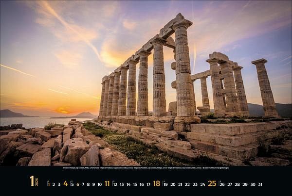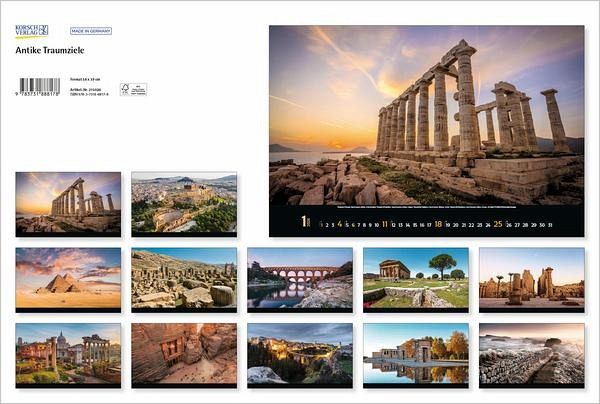 Faszinierende Städte und Bauwerke aus der Antike schmücken die Monatsblätter dieses Kalenders. Er ist der ideale Jahresbegleiter für alle, die sich für Geschichte interessieren und gerne in Gedanken in vergangene Zeiten zurückreisen. Ob als Anregung für das nächste Urlaubsziel oder einfach als Augenschmaus, der Kalender dient als stilvolles Dekoelement und Inspiration in einem.