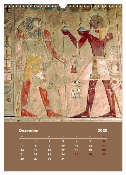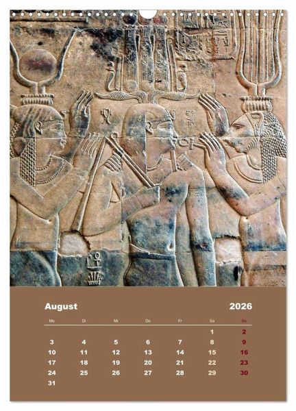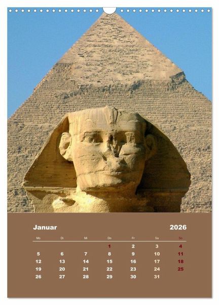Die ägyptische Geschichte reicht bis in das 4. Jahrtausend vor Christus zurück. Die Zeugen der Vergangenheit aus den verschiedenen Dynastien sind allgegenwärtig. Die Aufnahmen in diesem Kalender zeigen Beispiele aus Bawiti, Edfu, Gizeh, Karnak, Kom Ombo, Luxor, Philae und Theben.