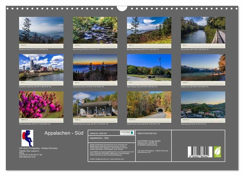QUALITÄT - Hochwertiger Fotokalender mit 12 wunderschönen Motiven auf lichtbeständigem Bilderdruckpapier, robuste Spiralbindung mit Aufhängebügel.NACHHALTIG - deutliche Abfallreduzierung durch bedarfsgerechte Einzelstückfertigung, umweltfreundliches FSC-zertifiziertes Papier, Produktion in Deutschland, klimabewusste Logistik.PERFEKTES GESCHENK - Kalender für Freunde und Familie, für Kinder und Erwachsene, jung und alt, zu Weihnachten, Geburtstag oder zwischendurch.VIELFALT - Bildkalender in verschiedenen Formaten, z.B. DIN A5, DIN A4, DIN A3 sowie DIN A2. Ob Naturmotiv, Gemälde oder Fotos, ideal für ein persönliches Wohlfühlambiente.Landschaftsbilder aus den südlichen Appalachen von Autor(in): Lille Ulven