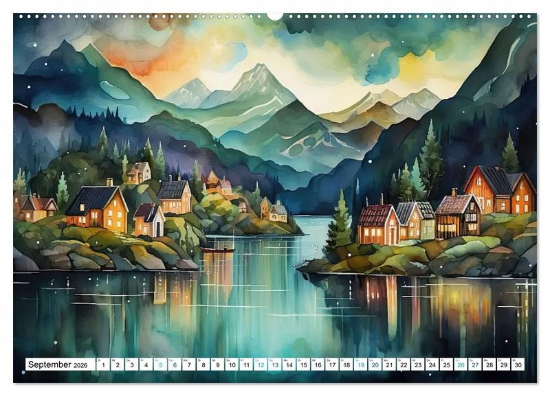 Entdecken Sie die faszinierende Welt der Aquarellkunst mit diesem exklusiven KI Kalender "Aquarellträume am See". Jeder Monat enthüllt eine atemberaubende Landschaft in Aquarelltechnik eingefangen, die die Schönheit und Vielfalt der Natur am Ufer eines Sees auf einzigartige Weise zum Ausdruck bringt.