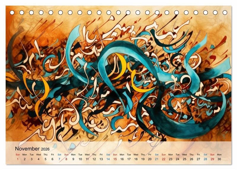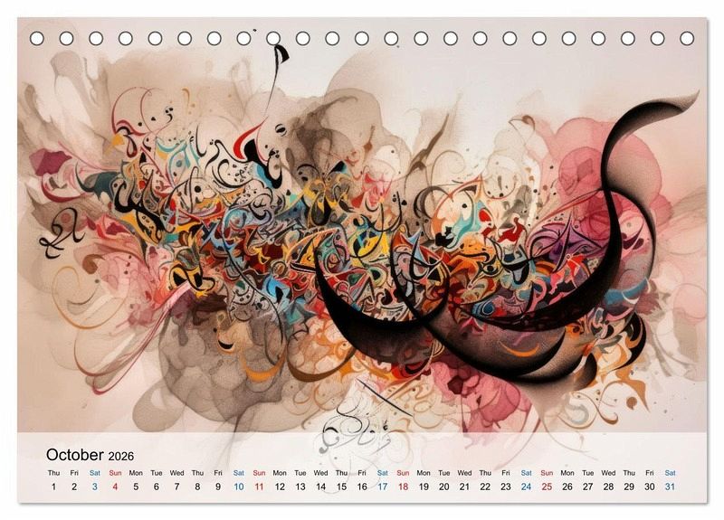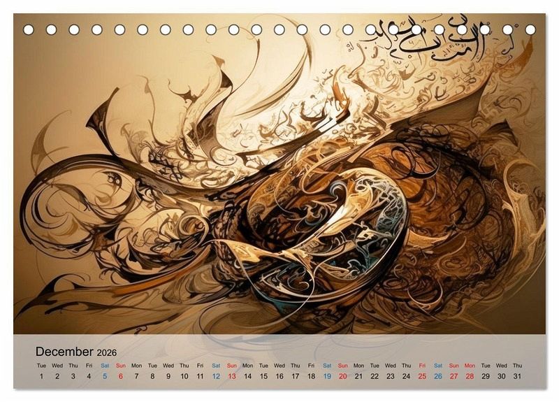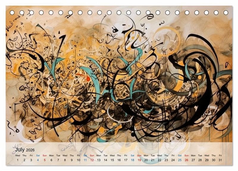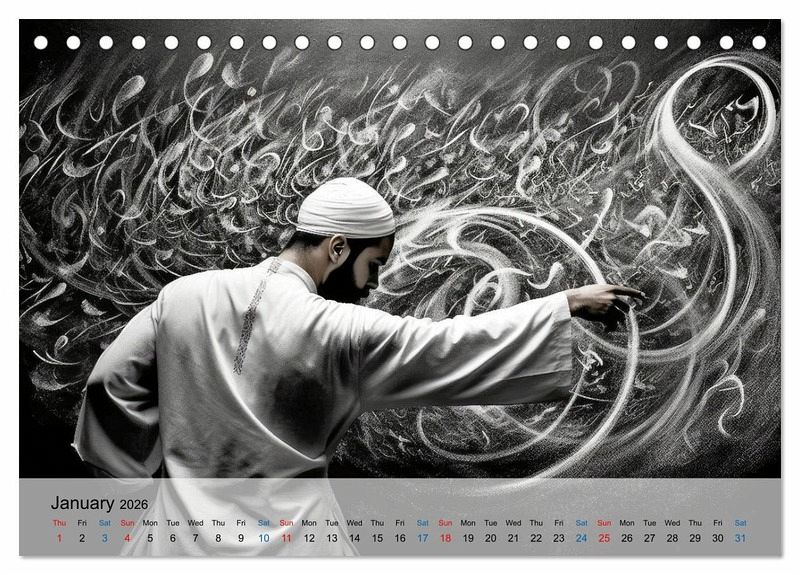 Discover the beauty of Arabic calligraphy in our exclusive art calendar. Each month reveals a unique design that captures the timeless elegance of Arabic characters in a modern art interpretation. This calendar is not only a practical timekeeping tool, but also a work of art that enhances your rooms. Ideal for art lovers and admirers of Arabic culture, it provides a daily inspiration and a bridge between tradition and contemporary, with ai generated design. Give yourself or your loved ones a special gift and immerse yourself in the world of Arabic calligraphy. Order now and let the beauty and depth of this art form accompany you throughout the year.