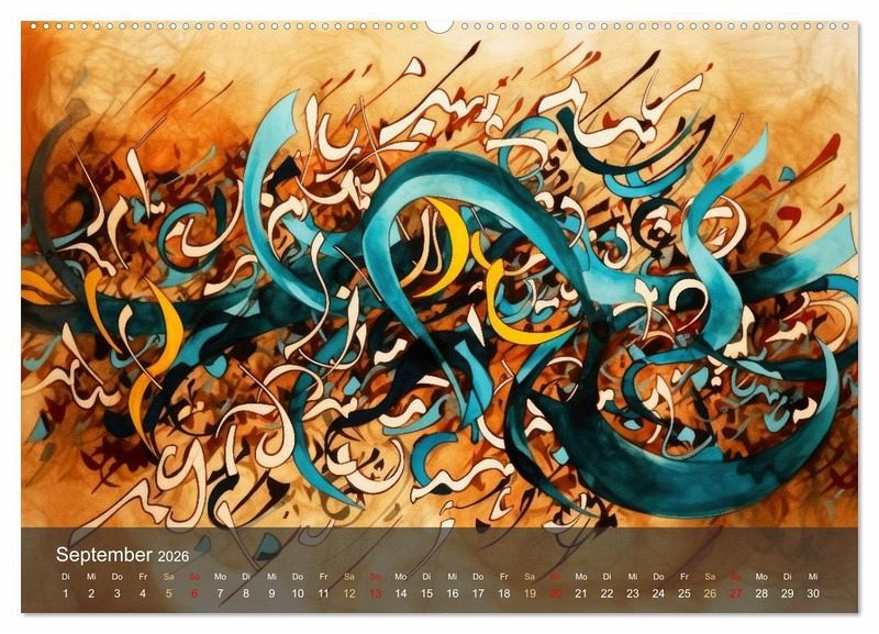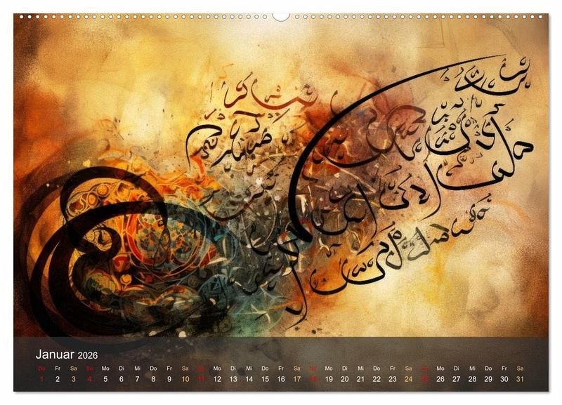 Entdecken Sie die Schönheit der arabischen Kalligraphie, in einer speziellen mit KI erstellten Kunstform, in unserem exklusiven Designkalender. Jeder Monat offenbart ein einzigartiges Design, das die zeitlose Eleganz arabischer Schriftzeichen in moderner Kunstinterpretation einfängt. Dieser Kalender ist ein Kunstwerk, das Ihre Räume veredelt. Ideal für Kunstliebhaber und Bewunderer der arabischen Kultur, bietet er eine tägliche Inspiration und eine Brücke zwischen Tradition und zeitgenössischem Design. Machen Sie sich oder Ihren Liebsten ein besonderes Geschenk und tauchen Sie ein in die Designwelt welche an die arabische Kalligraphie angelehnt ist.