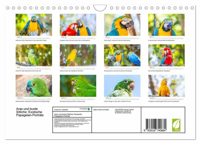 QUALITÄT - Hochwertiger Fotokalender mit 12 wunderschönen Motiven auf lichtbeständigem Bilderdruckpapier, robuste Spiralbindung mit Aufhängebügel.NACHHALTIG - deutliche Abfallreduzierung durch bedarfsgerechte Einzelstückfertigung, umweltfreundliches FSC-zertifiziertes Papier, Produktion in Deutschland, klimabewusste Logistik.PERFEKTES GESCHENK - Kalender für Freunde und Familie, für Kinder und Erwachsene, jung und alt, zu Weihnachten, Geburtstag oder zwischendurch.VIELFALT - Bildkalender in verschiedenen Formaten, z.B. DIN A5, DIN A4, DIN A3 sowie DIN A2. Ob Naturmotiv, Gemälde oder Fotos, ideal für ein persönliches Wohlfühlambiente.Majestätische Aras und Sittiche bringen Farbe und Lebensfreude an Ihre Wand. von Autor(in): Wolfgang Schäfer
