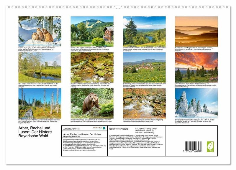 Idyllisch gelegene Orte wie Zwiesel auf der Glasstraße laden zum Ausruhen ein. Doch bald schon lockt der Ruf des Berges und es gilt Täler, Wasserfälle und Berggipfel zu erkunden. Diese faszinierende Bilderreise führt Sie durch das früher als Böhmerwald und heute als Hinterer Bayerischer Wald bezeichnete Mittelgebirge. Begeistert durch ursprüngliche Naturerlebnisse und landschaftlichen Hochgenuss, nimmt der Kalender Sie mit auf eine Wanderung entlang der Grenze zu Tschechien. Oder man sucht sich einfach ein schönes Plätzchen und entspannt in der schönen Natur.