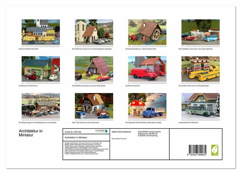 Was wären Modellbahnen ohne Bahnhöfe oder sonstige Gebäude? "Fallerhäuschen" sind längst zum Gattungsbegriff für vielfältiges Modellbahnzubehör geworden. Die Häuslebauer aus dem Schwarzwald haben es von Anfang an verstanden, ihre Modelle attraktiv in Szene zu setzen, sei es in Katalogen oder auf farbigen Abbildungen, welche die Verkaufskartons zierten. Kein Wunder, dass Sammler heute selbst leere Schachteln sammeln. Unser Kalender zeigt die klassischen" Fallerhäuschen" im Stile der 50er- und 60er-Jahre arrangiert.