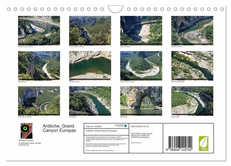QUALITÄT - Hochwertiger Fotokalender mit 12 wunderschönen Motiven auf lichtbeständigem Bilderdruckpapier, robuste Spiralbindung mit Aufhängebügel.NACHHALTIG - deutliche Abfallreduzierung durch bedarfsgerechte Einzelstückfertigung, umweltfreundliches FSC-zertifiziertes Papier, Produktion in Deutschland, klimabewusste Logistik.PERFEKTES GESCHENK - Kalender für Freunde und Familie, für Kinder und Erwachsene, jung und alt, zu Weihnachten, Geburtstag oder zwischendurch.VIELFALT - Bildkalender in verschiedenen Formaten, z.B. DIN A5, DIN A4, DIN A3 sowie DIN A2. Ob Naturmotiv, Gemälde oder Fotos, ideal für ein persönliches Wohlfühlambiente.Ardèche, der Grand Canyon Europas, im Süden von Frankreich von Autor(in): Michael Friedchen