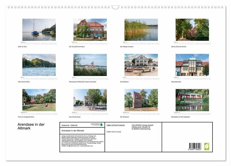 Tauchen Sie ein in die faszinierende Schönheit von Arendsee, einem der malerischsten Orte im Herzen der Altmark. Unser exklusiver Kalender bringt die einzigartige Landschaft, den zauberhaften See und die historischen Sehenswürdigkeiten direkt in Ihr Zuhause. Lassen Sie sich Monat für Monat von atemberaubenden Fotografien inspirieren, die die Ruhe und den Charme dieser unvergleichlichen Region einfangen.