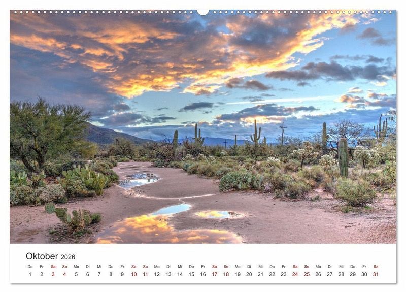 Dieser Kalender präsentiert eine wundervolle und atemberaubende Landschaft. Der Bundesstaat Arizona, auch Grand Canyon State gennant, überzeugt mit einer einzigartigen Natur und wunderschönen Aussichten. Holen Sie sich ein bisschen Arizona direkt nach Hause.