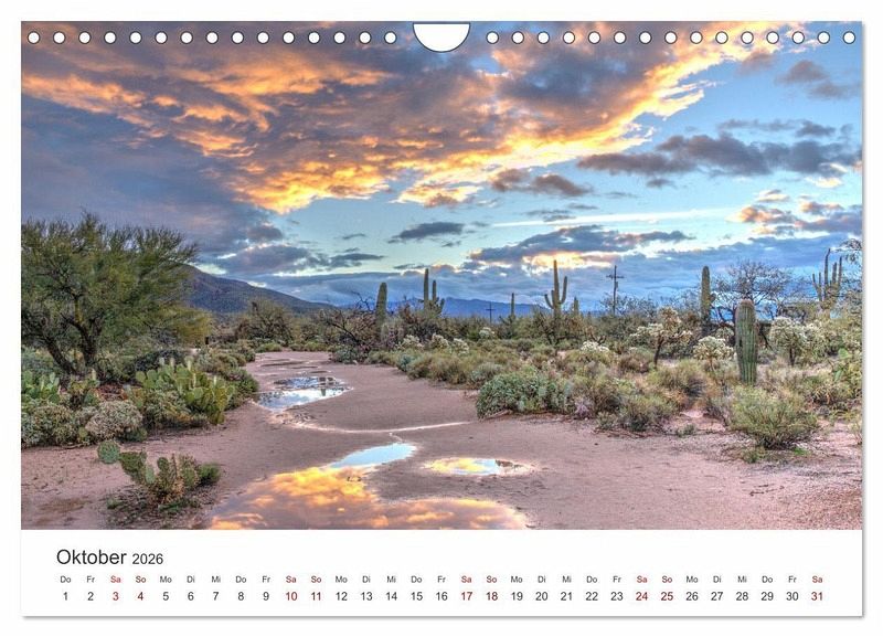 Dieser Kalender präsentiert eine wundervolle und atemberaubende Landschaft. Der Bundesstaat Arizona, auch Grand Canyon State gennant, überzeugt mit einer einzigartigen Natur und wunderschönen Aussichten. Holen Sie sich ein bisschen Arizona direkt nach Hause.