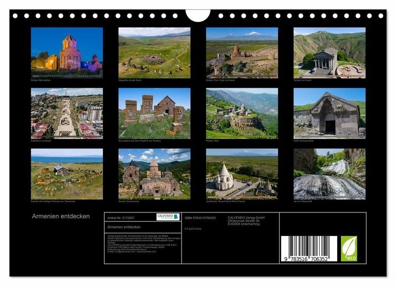 QUALITÄT - Hochwertiger Fotokalender mit 12 wunderschönen Motiven auf lichtbeständigem Bilderdruckpapier, robuste Spiralbindung mit Aufhängebügel.NACHHALTIG - deutliche Abfallreduzierung durch bedarfsgerechte Einzelstückfertigung, umweltfreundliches FSC-zertifiziertes Papier, Produktion in Deutschland, klimabewusste Logistik.PERFEKTES GESCHENK - Kalender für Freunde und Familie, für Kinder und Erwachsene, jung und alt, zu Weihnachten, Geburtstag oder zwischendurch.VIELFALT - Bildkalender in verschiedenen Formaten, z.B. DIN A5, DIN A4, DIN A3 sowie DIN A2. Ob Naturmotiv, Gemälde oder Fotos, ideal für ein persönliches Wohlfühlambiente.Armenien, das erste christliche Land der Welt, hat viel zu bieten. von Autor(in): Frauke Scholz