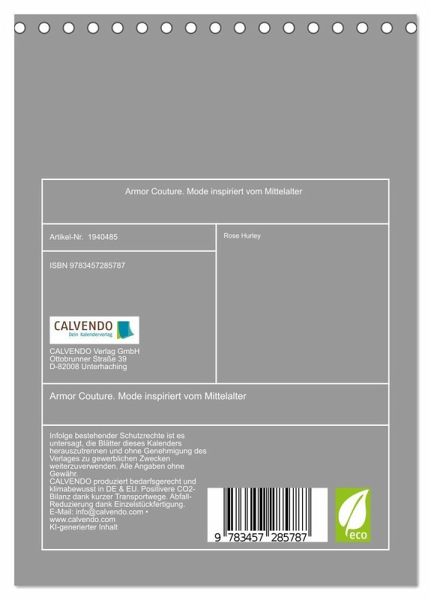 QUALITÄT - Hochwertiger Fotokalender mit 12 wunderschönen Motiven auf lichtbeständigem Bilderdruckpapier, robuste Spiralbindung.NACHHALTIG - deutliche Abfallreduzierung durch bedarfsgerechte Einzelstückfertigung, umweltfreundliches FSC-zertifiziertes Papier, Produktion in Deutschland, klimabewusste Logistik.PERFEKTES GESCHENK - Kalender für Freunde und Familie, für Kinder und Erwachsene, jung und alt, zu Weihnachten, Geburtstag oder zwischendurch.VIELFALT - Bildkalender in verschiedenen Formaten, z.B. DIN A5, DIN A4, DIN A3 sowie DIN A2. Ob Naturmotiv, Gemälde oder Fotos, ideal für ein persönliches Wohlfühlambiente.High Fashion Eleganz trifft auf Rüstung von Autor(in): Rose Hurley