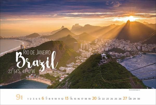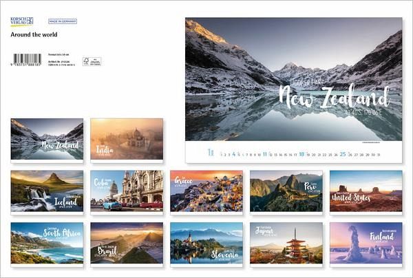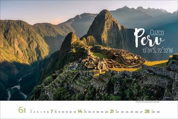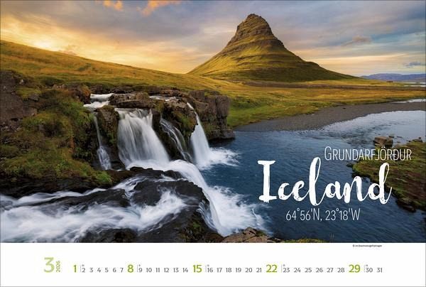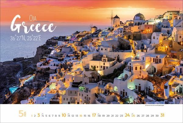 Dieser Kalender entführt den Betrachter auf eine Reise rund um die Welt im Poster-Look. Die Kombination aus stimmungsvollen Reisefotografien und einer modern gestalteten Typografie weckt nicht nur die Reiselust, sondern macht den Kalender auch zu einem besonderen Blickfang.