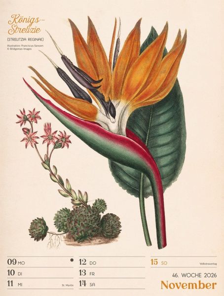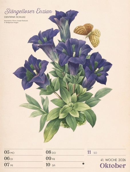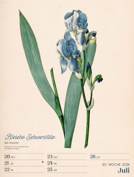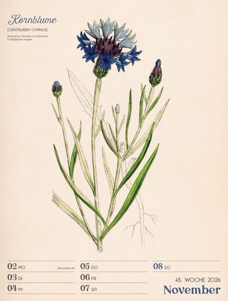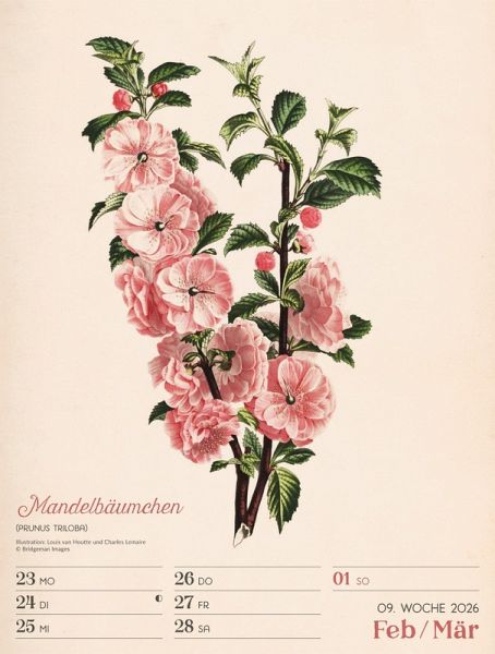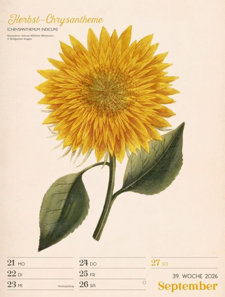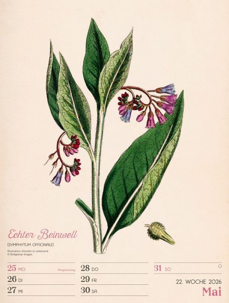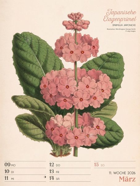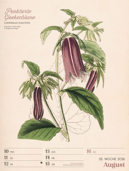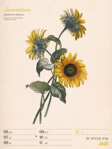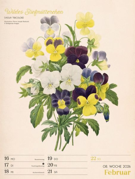 Wochenkalender mit 53 Blumen und Blüten in historischen botanischen Illustrationen Blumen-Kalender im Hochformat: 25x33 cm Mit übersichtlichem Eintragekalendarium sowie Kreuzworträtseln und Sudokus auf jeder Rückseite Auf Papier aus nachhaltiger Forstwirtschaft in Deutschland produziert, mit Spiralbindung Leistet einen Beitrag zum Ackermann Firmenwald Deutschsprachiges Kalendarium