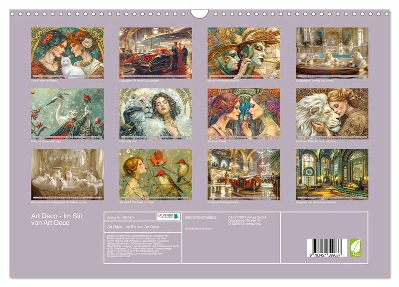 Art Deco ist ein Kunst- und Designstil. Typische Merkmale des Art Deco sind stilisierte Darstellungen von Pflanzen, Tieren und menschlichen Figuren. Mit Hilfe der KI sind nun Werke ähnlich diesem Stil entstanden, die fantasievoll, edel und sinnlich verträumt wirken. Ein Hauch aus einer anderen Zeit hat hier Einfluss gehabt, der immer noch begeistert. Lassen Sie sich von den entstandenen Werken inspirieren und ein wenig in diese Zeit entführen.