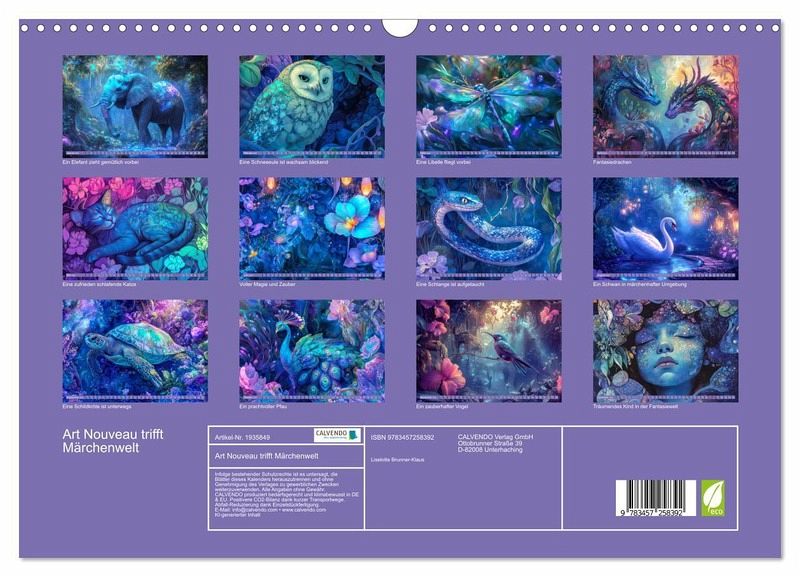 QUALITÄT - Hochwertiger Fotokalender mit 12 wunderschönen Motiven auf lichtbeständigem Bilderdruckpapier, robuste Spiralbindung mit Aufhängebügel.NACHHALTIG - deutliche Abfallreduzierung durch bedarfsgerechte Einzelstückfertigung, umweltfreundliches FSC-zertifiziertes Papier, Produktion in Deutschland, klimabewusste Logistik.PERFEKTES GESCHENK - Kalender für Freunde und Familie, für Kinder und Erwachsene, jung und alt, zu Weihnachten,Geburtstag oder zwischendurch.VIELFALT - Bildkalender in verschiedenen Formaten, z.B. DIN A5, DIN A4, DIN A3 sowie DIN A2. Ob Naturmotiv, Gemälde oder Fotos, ideal für ein persönliches Wohlfühlambiente.Eine wundervolle Märchenwelt der Tiere von Autor(in): Liselotte Brunner-Klaus