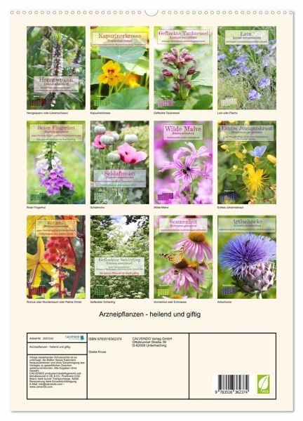 QUALITÄT - Hochwertiger Fotokalender mit 12 wunderschönen Motiven auf lichtbeständigem Bilderdruckpapier, robuste Spiralbindung mit Aufhängebügel.NACHHALTIG - deutliche Abfallreduzierung durch bedarfsgerechte Einzelstückfertigung, umweltfreundliches FSC-zertifiziertes Papier, Produktion in Deutschland, klimabewusste Logistik.PERFEKTES GESCHENK - Kalender für Freunde und Familie, für Kinder und Erwachsene, jung und alt, zu Weihnachten, Geburtstag oder zwischendurch.VIELFALT - Bildkalender in verschiedenen Formaten, z.B. DIN A5, DIN A4, DIN A3 sowie DIN A2. Ob Naturmotiv, Gemälde oder Fotos, ideal für ein persönliches Wohlfühlambiente.Blühende Heilpflanzen wunderschön porträtiert, mit einer Kurzbeschreibung ihrer Wirkweisen von Autor(in): Gisela Kruse