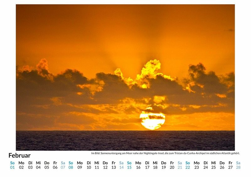 Entdecken Sie die faszinierende Schönheit der abgelegenen Inseln Ascension und Tristan da Cunha mit unserem exklusiven Wandkalender! Tauchen Sie Monat für Monat in atemberaubende Landschaften und einzigartige Naturwunder ein, die nur wenige je zu Gesicht bekommen. Die 12 sorgfältig ausgewählten Motive auf hochwertigem, lichtbeständigem Bilderdruckpapier bringen die unberührte Wildnis direkt in Ihr Zuhause. Gedruckt in Deutschland auf FSC-zertifiziertem Papier, vereint dieser Kalender Nachhaltigkeit und höchste Druckqualität. Perfekt als Geschenk oder für Ihr eigenes Zuhause - lassen Sie sich von der Magie dieser entlegenen Inseln verzaubern! Jetzt bestellen und jeden Monat ein neues Abenteuer erleben! Hochwertig Erleben Sie ein Jahr voller Eleganz mit unserem Premium-Fotokalender. Jedes der 12 Motive ist auf hochwertigem, lichtbeständigem Bilderdruckpapier gedruckt, um die Lebendigkeit jedes Bildes zu bewahren. Die robuste Spiralbindung gewährleistet Langlebigkeit und einfache Handhabung. Nachhaltig Unser Engagement für die Umwelt spiegelt sich in jedem Exemplar wider. Durch die Produktion auf Abruf reduzieren wir signifikant unseren Abfall. Wir verwenden ausschließlich umweltfreundliches, FSC-zertifiziertes Papier. Stolz gefertigt in Deutschland, achten wir bei unserer Logistik auf Klimaschutz, um unseren ökologischen Fußabdruck zu minimieren. Das ideale Geschenk Dieser Kalender ist das perfekte Präsent für jeden Anlass - ob Weihnachten, Geburtstage oder einfach als liebevolle Aufmerksamkeit zwischendurch. Geeignet für Freunde, Familie, Kinder und Erwachsene gleichermaßen, bereichert er jedes Zuhause mit seiner Vielfalt und Schönheit, unabhängig vom Alter der Beschenkten.