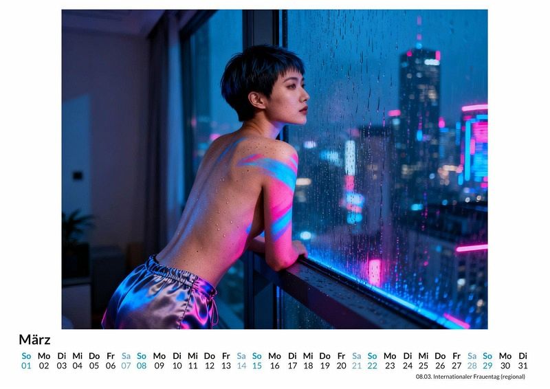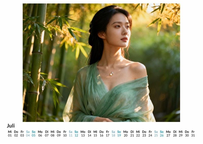 Eine Welt voller Anmut und geheimnisvoller Eleganz entfaltet sich Monat für Monat. Dieser Kalender ist optimal für: Liebhaber asiatischer Ästhetik. Sammler von Darstellungen, die Sinnlichkeit und Stil verbinden. Menschen, die eine besondere Wanddekoration suchen. Der Kalender "Asian" präsentiert zwölf Kompositionen, die weibliche Grazie in freizügigen, aber stets geschmackvollen Posen zeigen. Der Fokus liegt auf dem Zusammenspiel von Licht, Schatten und Körperform, eingebettet in ein Ambiente mit fernöstlichem Flair. Diese Bilder entstanden nicht vor einer Kameralinse, sondern wurden durch die Verschmelzung von kreativer Vision und digitaler Schöpfungskraft komponiert. Jedes Motiv erzählt eine eigene, leise Geschichte von Stärke und Zartheit. Was der Kalender bietet: Zwölf Monatsblätter mit einzigartigen Motiven. Ein übersichtliches Kalendarium für die Jahresplanung. Einen dekorativen Wandschmuck für das ganze Jahr. Der Kalender "Asian" ist eine Hommage an die Schönheit und Eleganz des fernen Ostens. Er begleitet durch das Jahr mit Bildern, die zum Betrachten und Verweilen einladen. Eine Entdeckungsreise für die Sinne, die in jedem Raum einen besonderen Akzent setzt. Es lohnt sich, einen genaueren Blick auf die einzelnen Monatsmotive zu werfen.