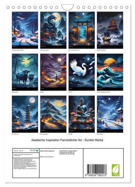 QUALITÄT - Hochwertiger Fotokalender mit 12 wunderschönen Motiven auf lichtbeständigem Bilderdruckpapier, robuste Spiralbindung mit Aufhängebügel.NACHHALTIG - deutliche Abfallreduzierung durch bedarfsgerechte Einzelstückfertigung, umweltfreundliches FSC-zertifiziertes Papier, Produktion in Deutschland, klimabewusste Logistik.PERFEKTES GESCHENK - Kalender für Freunde und Familie, für Kinder und Erwachsene, jung und alt, zu Weihnachten, Geburtstag oder zwischendurch.VIELFALT - Bildkalender in verschiedenen Formaten, z.B. DIN A5, DIN A4, DIN A3 sowie DIN A2. Ob Naturmotiv, Gemälde oder Fotos, ideal für ein persönliches Wohlfühlambiente.Inspirierende Kunstwerke im asiatischen Stil von Autor(in): magann