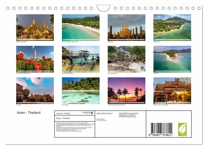 Dieser faszinierende Kalender vom Reisefotografen Peter Schickert zeigt warum Thailand zu den beliebtesten Urlaubszielen weltweit zählt: neben zahlreichen Traumstränden locken prächtige Tempelanlagen und spektakuläre Landschaften.