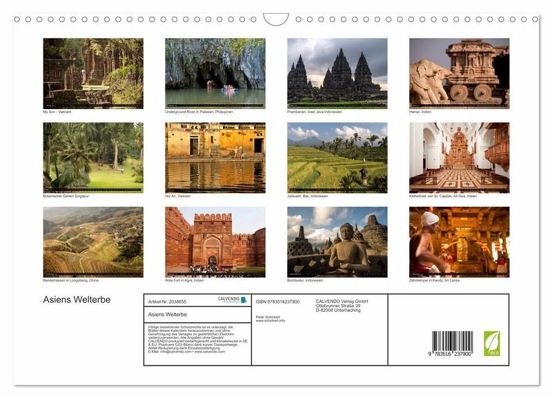 Mystische Tempelanlagen, historische Städte oder einzigartige Kulturlandschaften, dieser Kalender vom Reisefotografen Peter Schickert zeigt die faszinierende Vielfalt asiatischer Welterbestätten.